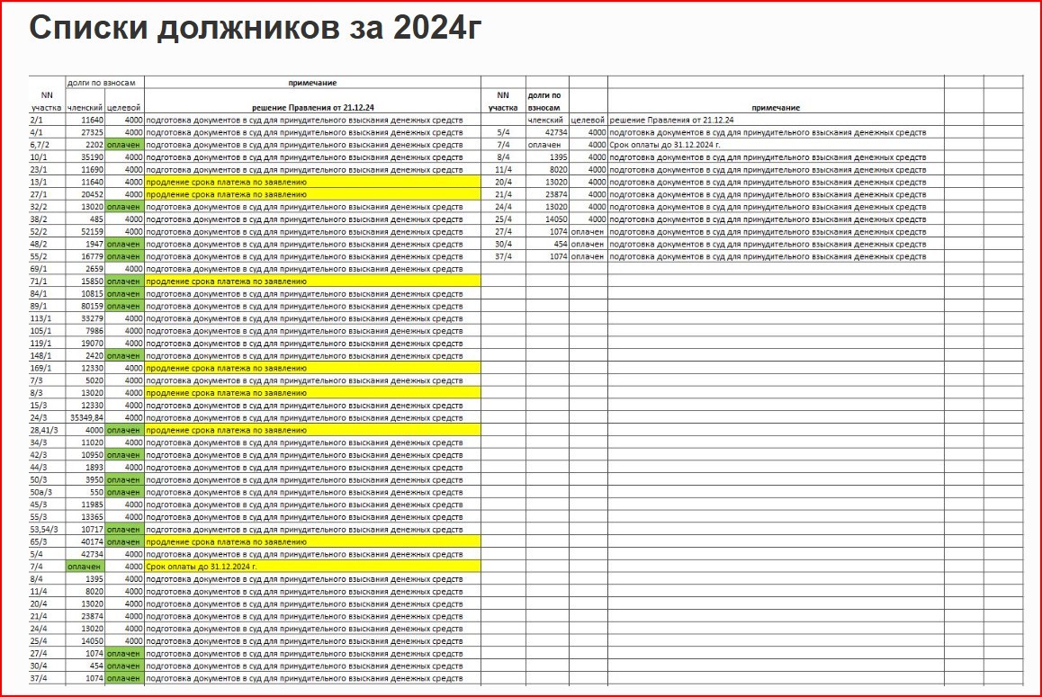 Списки должников за 2024г
